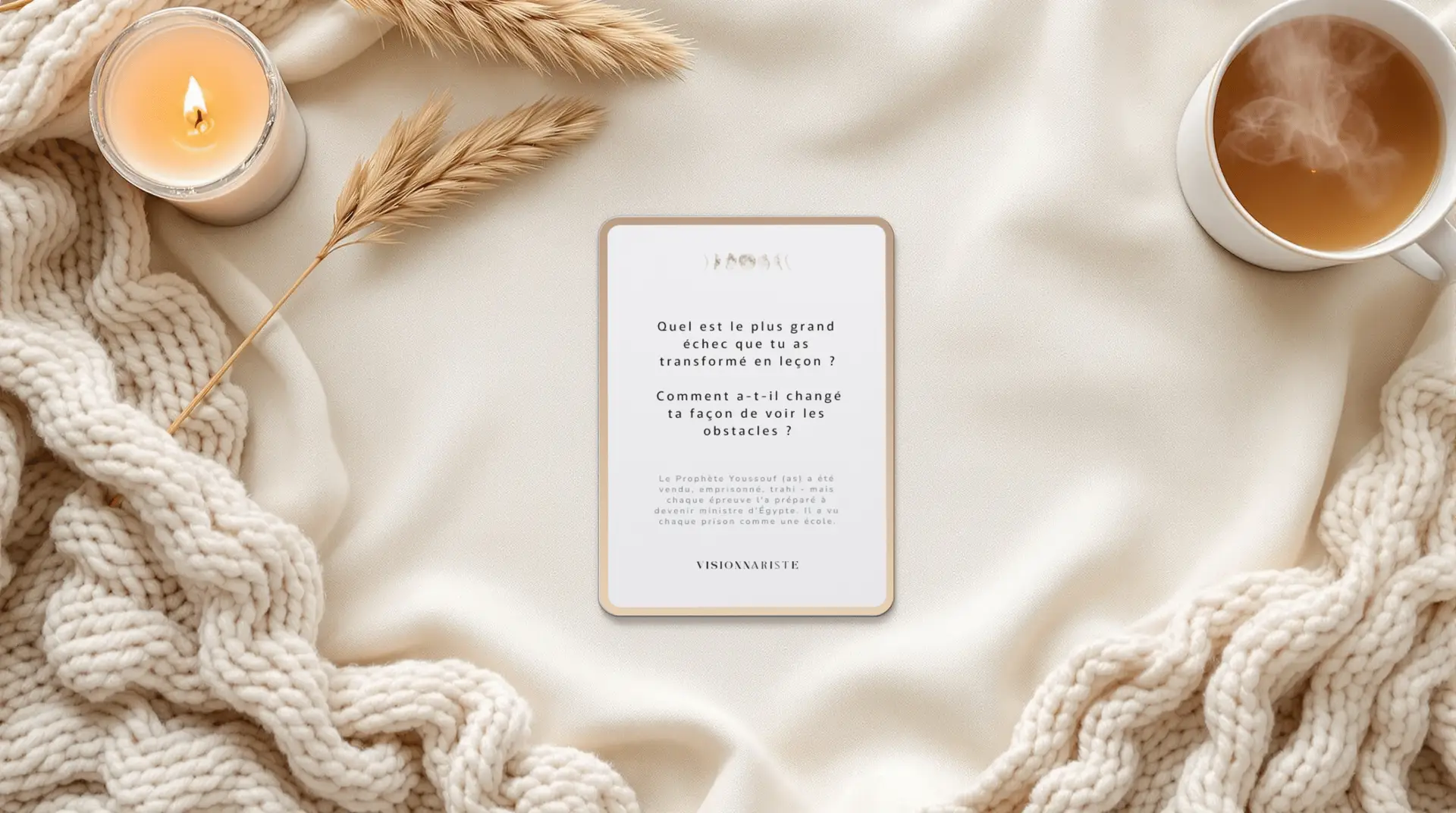 Convertie depuis 3 ans, on me disait « reste à la maison ». Les cartes CONVOS m’ont rappelé qu’être :  ambitieuse ET viser la piété c’est possible. VISIONNARISTE m’a appris que mon ambition est un amanah (dépôt sacré) qu’Allah m’a confié. Je ne l’enterre plus.